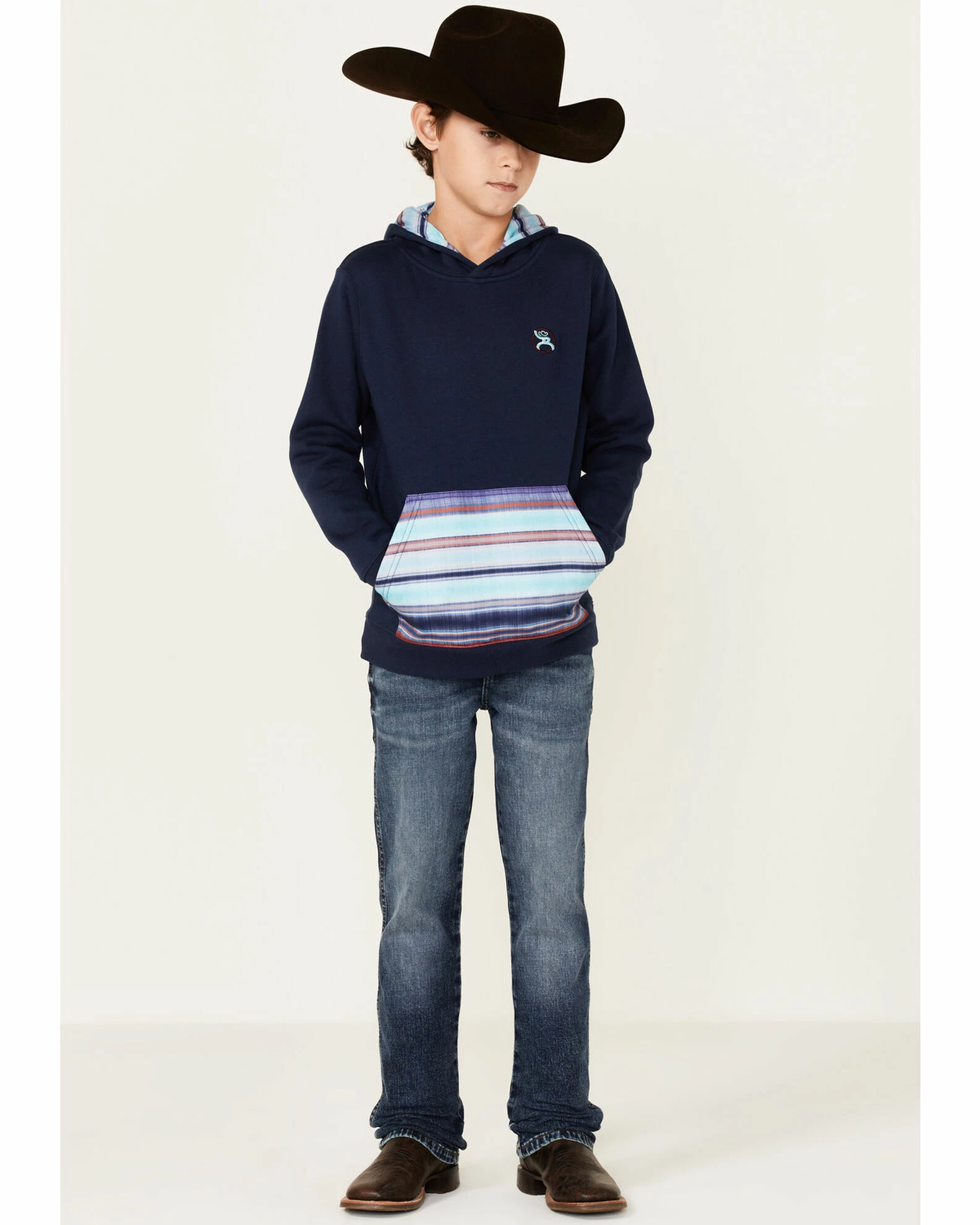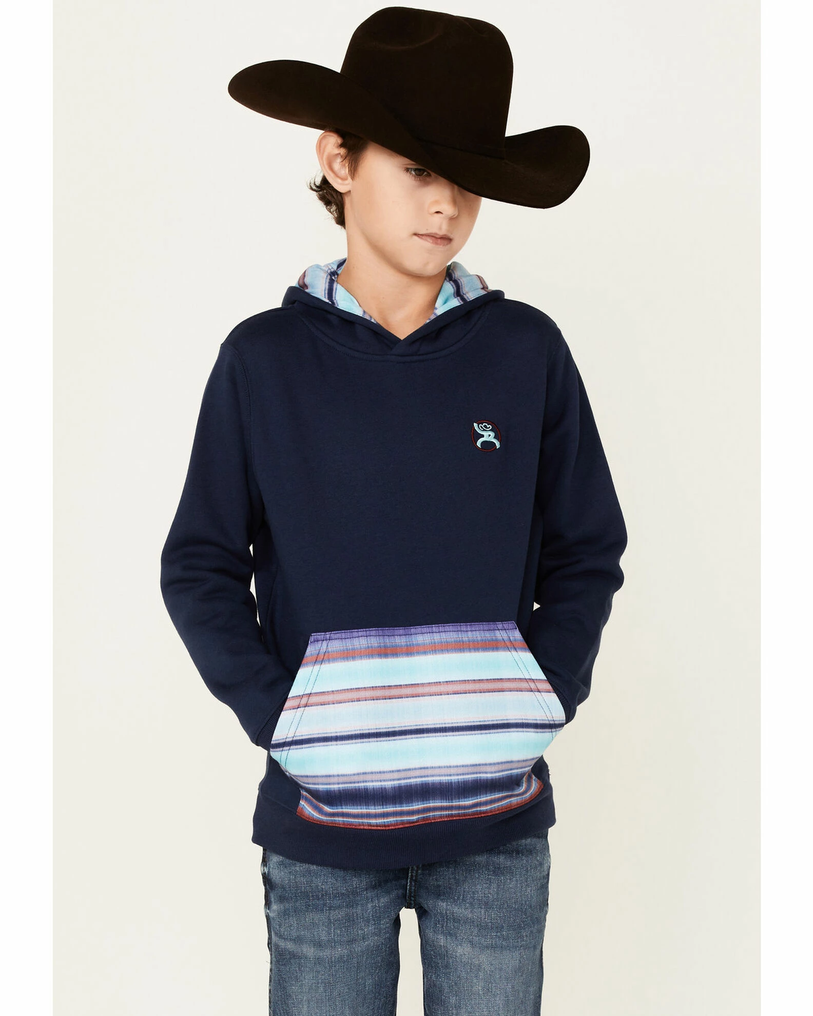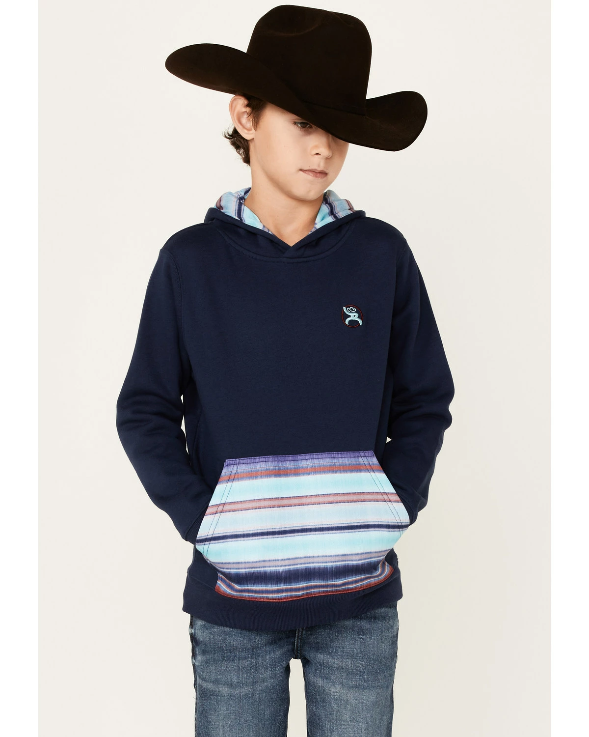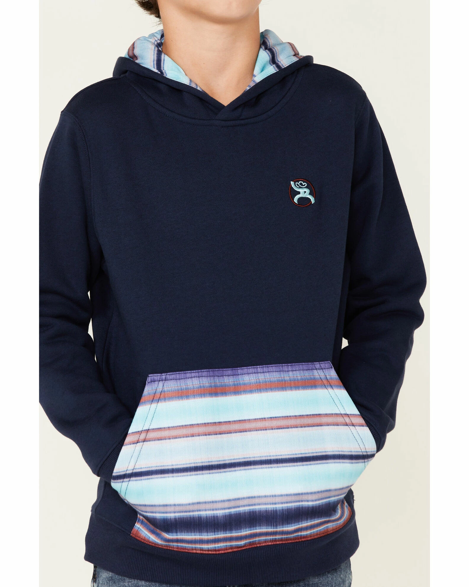 HOOEY Boys’ Serape Kangaroo Pocket Hooded Sweatshirt Navy