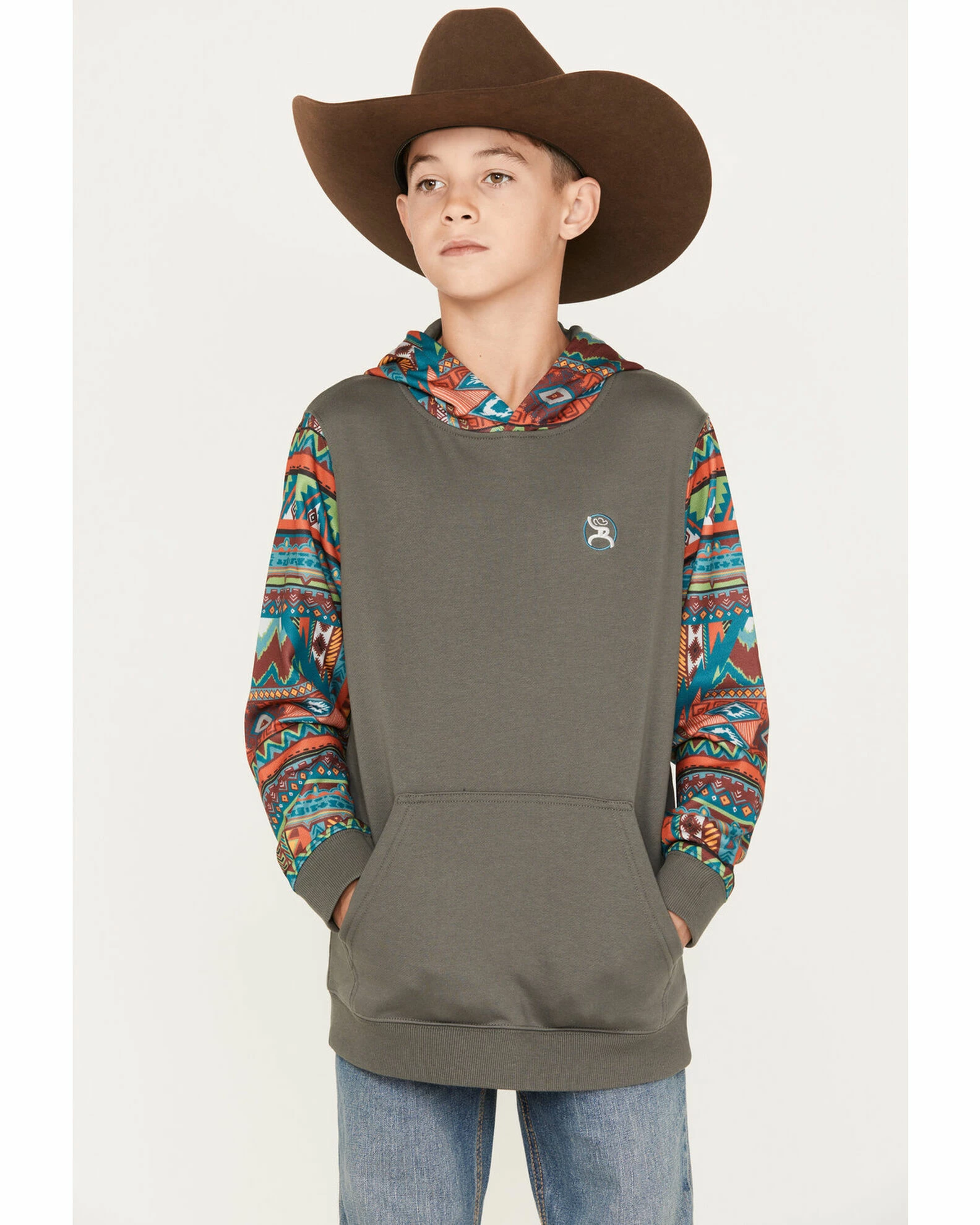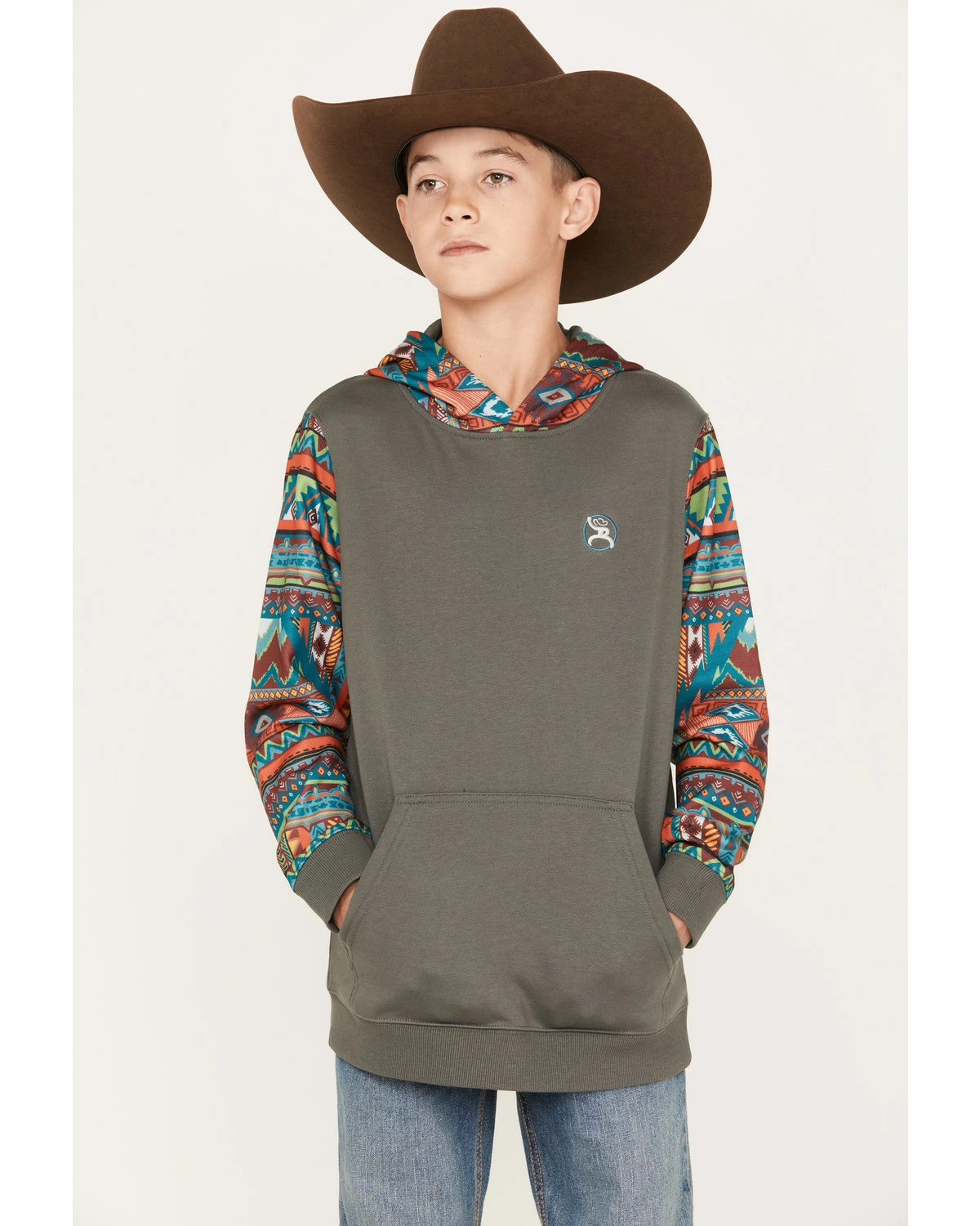 Hooey Boys’ Southwestern Print Contrast Hooded Sweatshirt Green