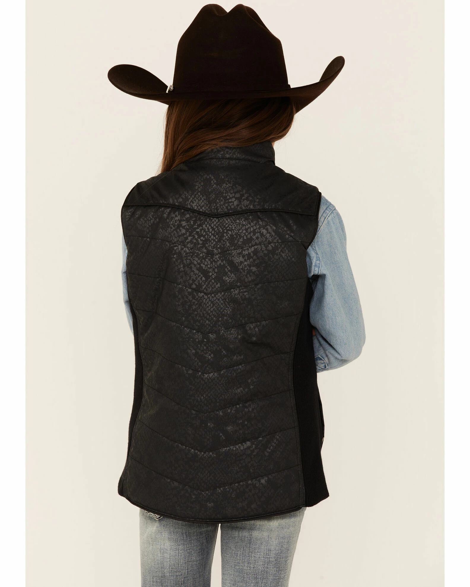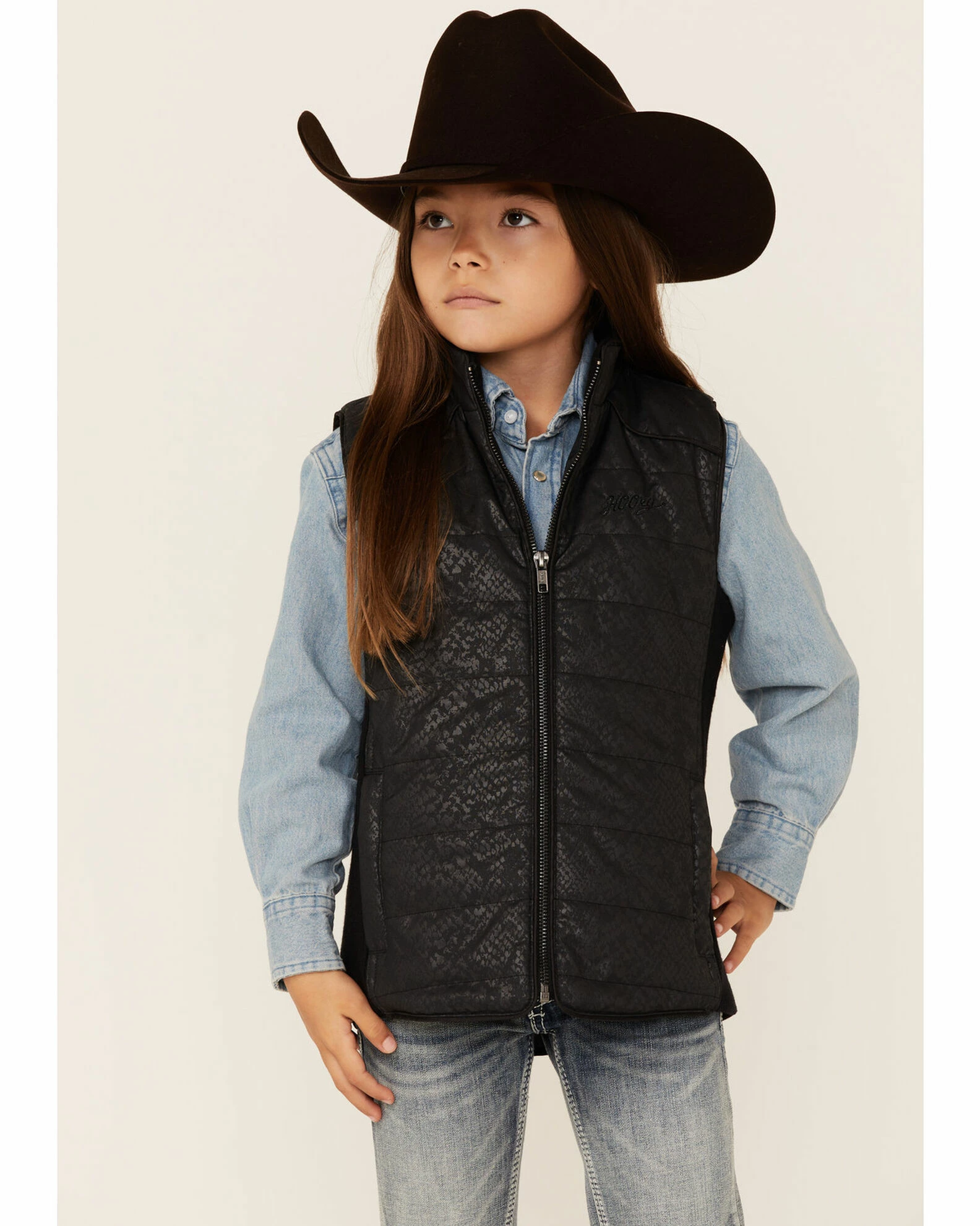 Hooey Girls’ Black Snake Print Quilted Zip-Front Softshell Vest