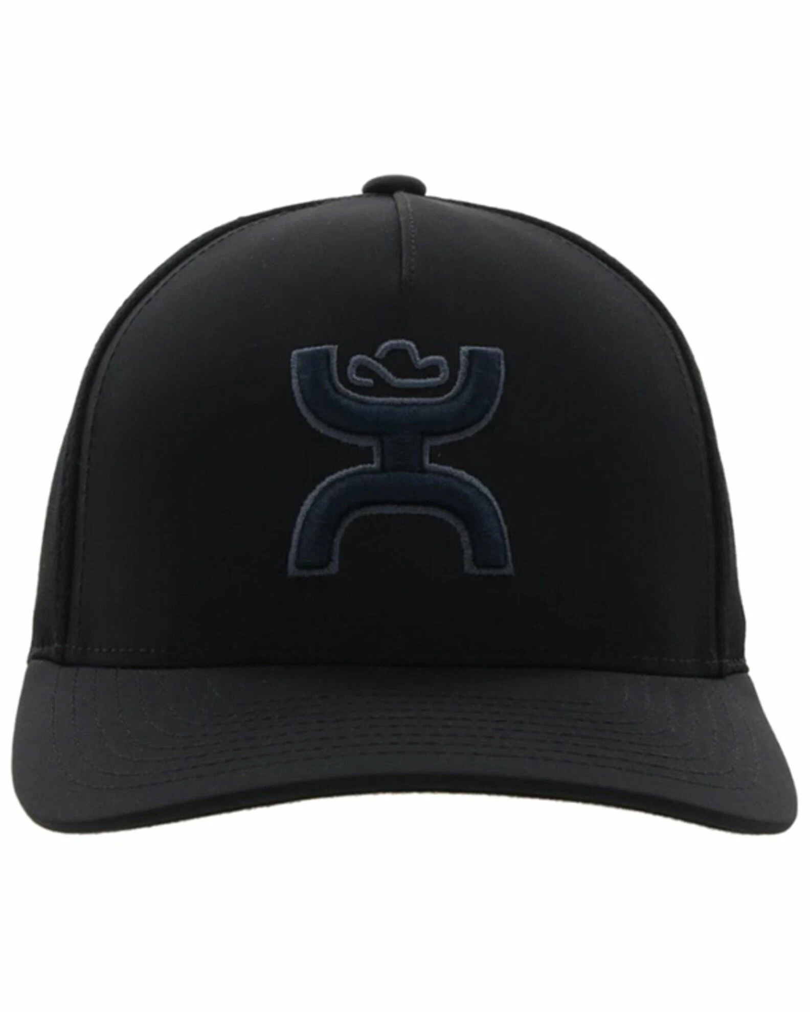 - Black and blue logo embroidery on front