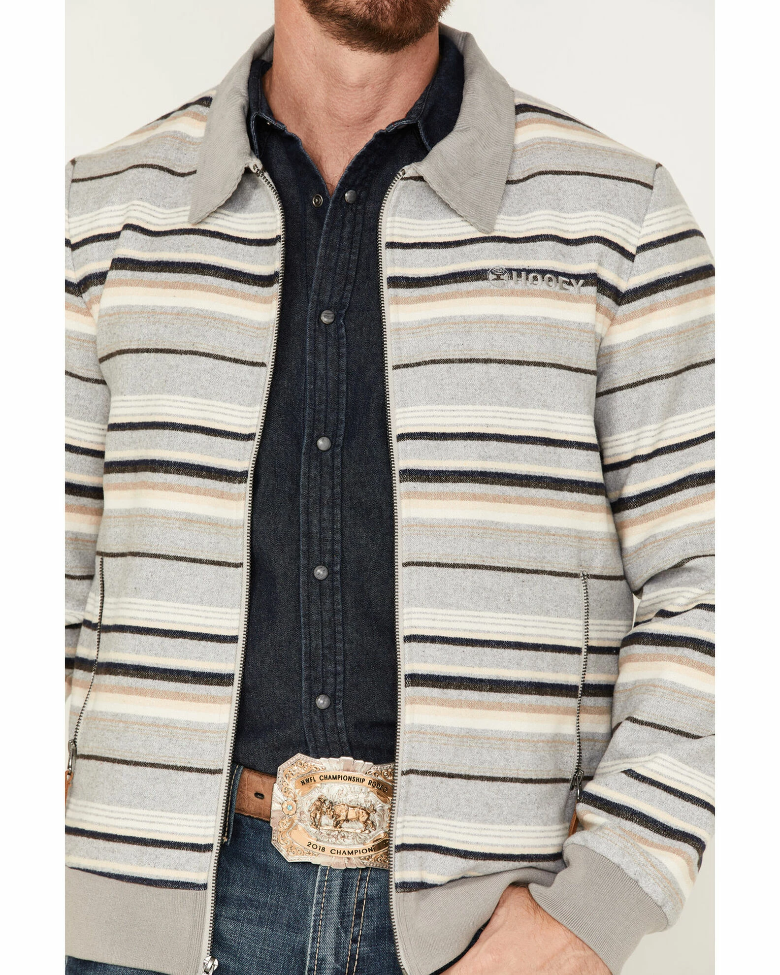 HOOey Men’s Satin Lined Stripe Zip-Front Jacket Grey