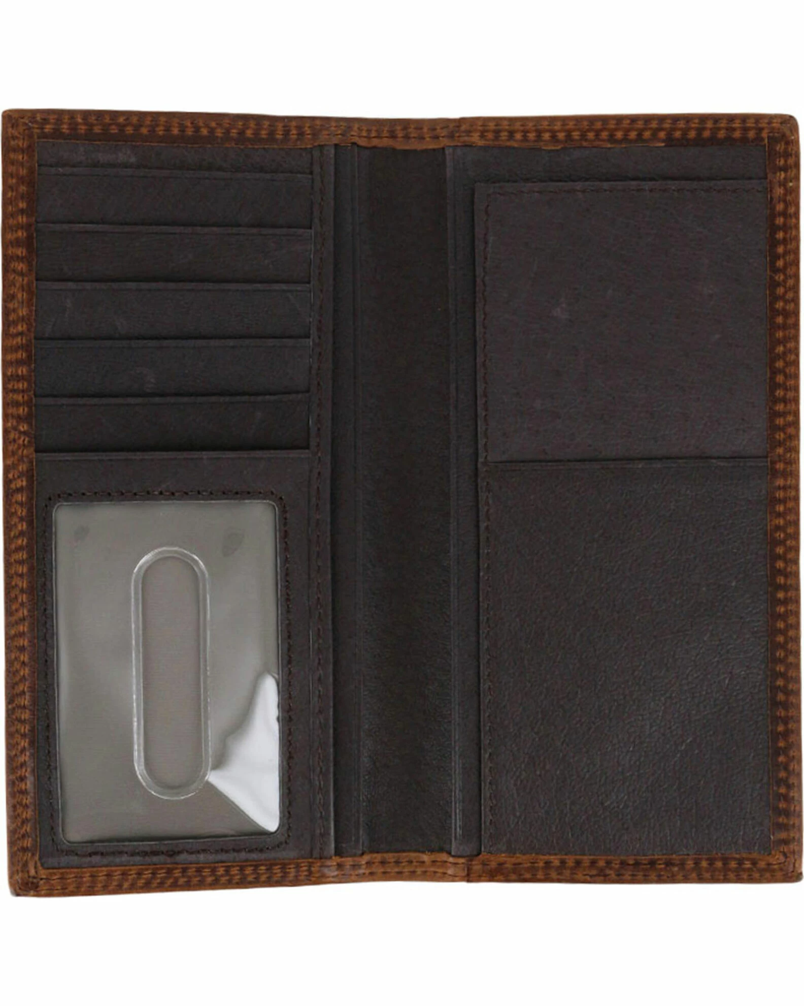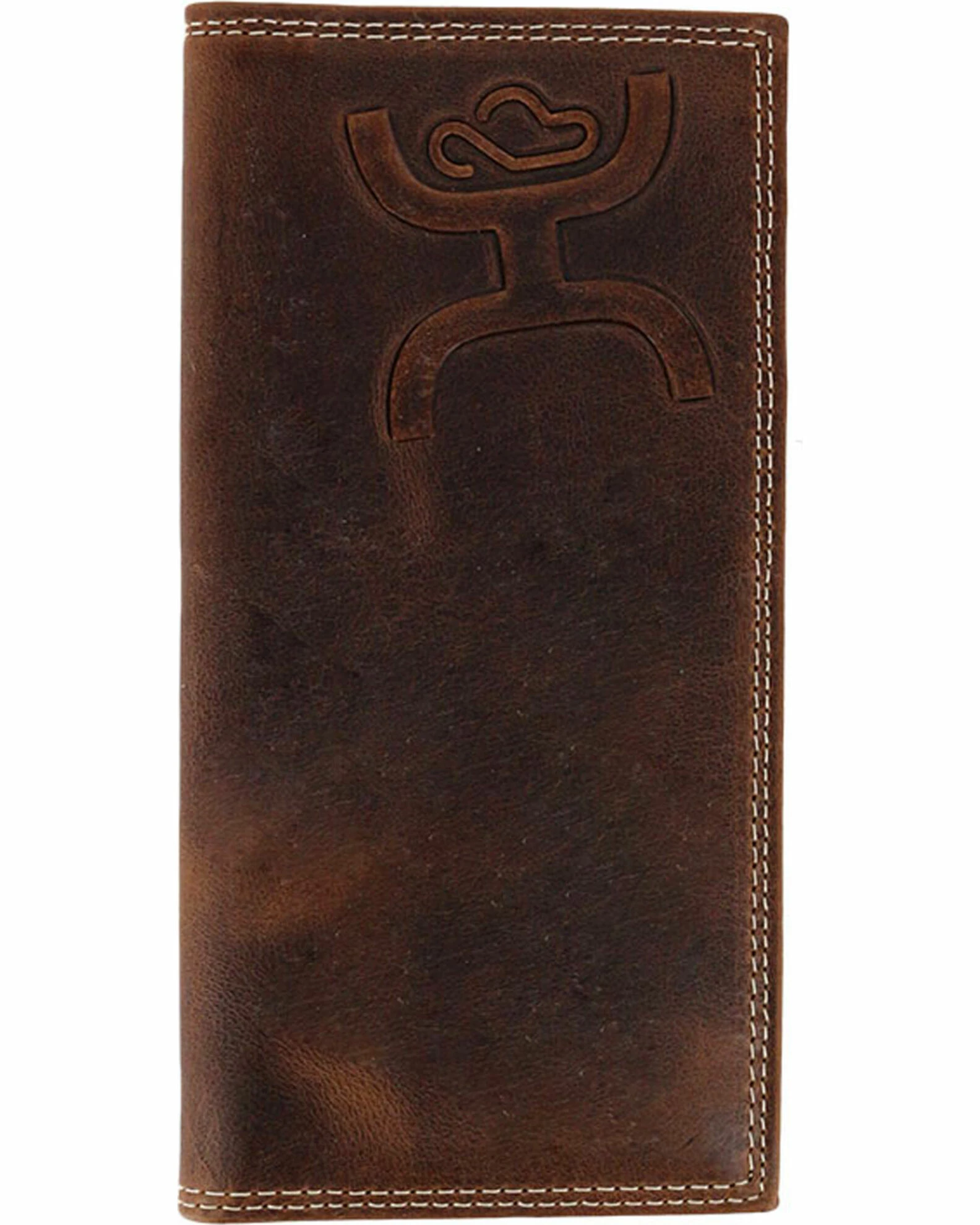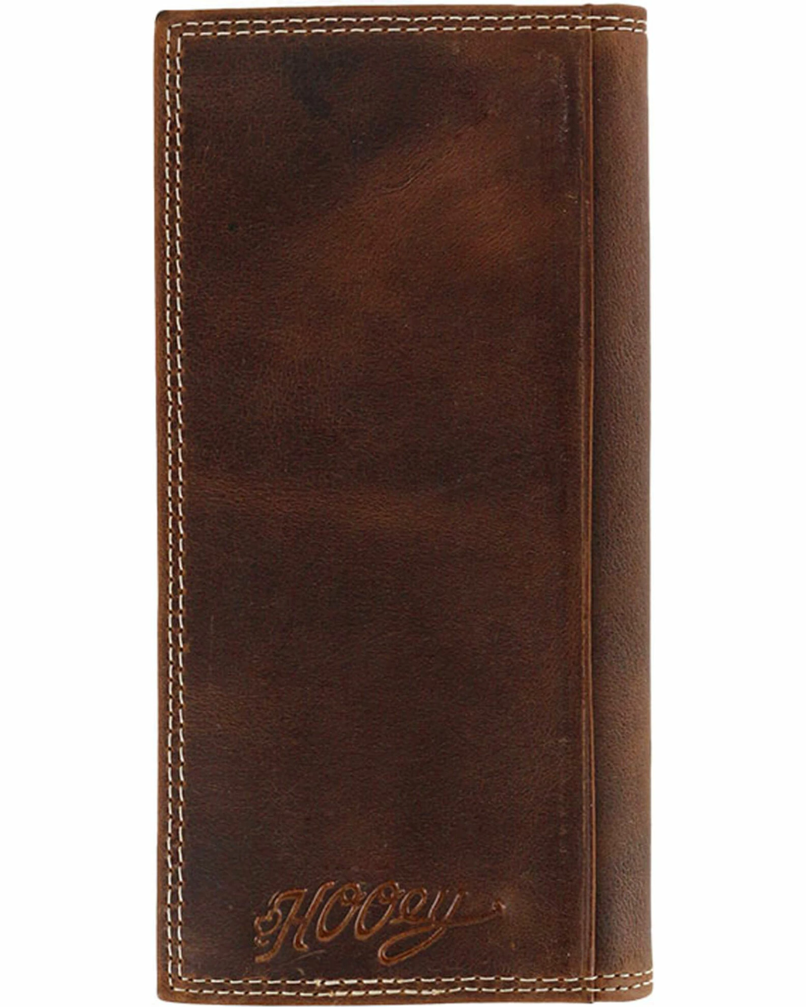 Carry your cash in style with this HOOey Tooled Logo Rodeo Wallet. It features a distressed leather design with an embossed logo on the front. Featuring multiple pockets and a checkbook holder, this HOOey wallet has got you covered.