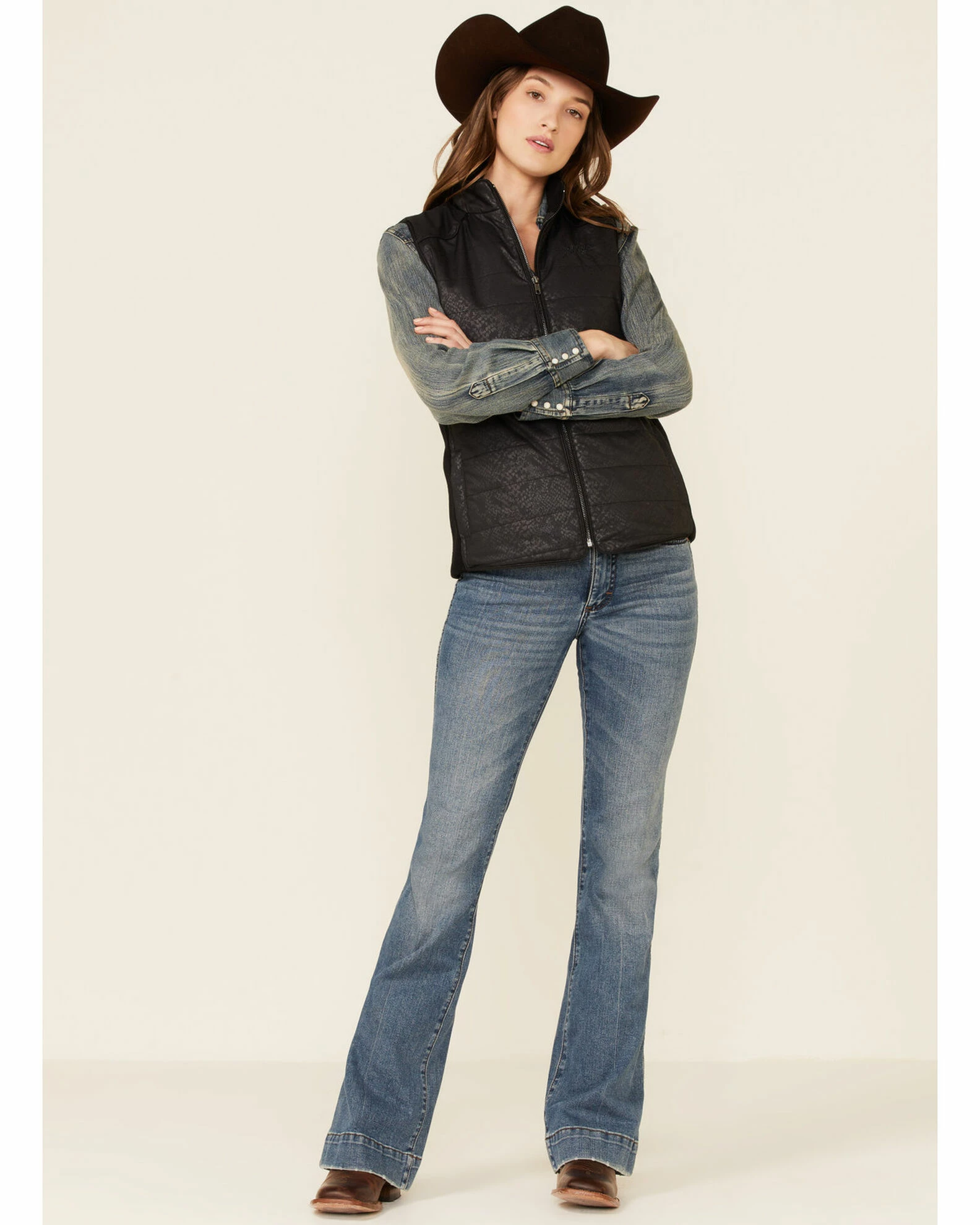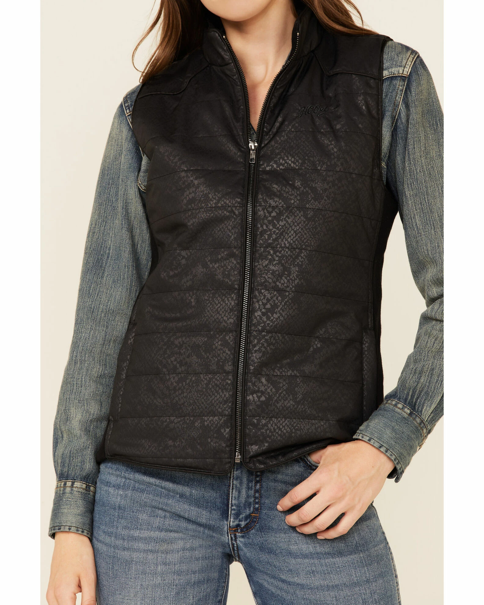 Hooey Women’s Black Snake Print Quilted Zip-Front Softshell Vest