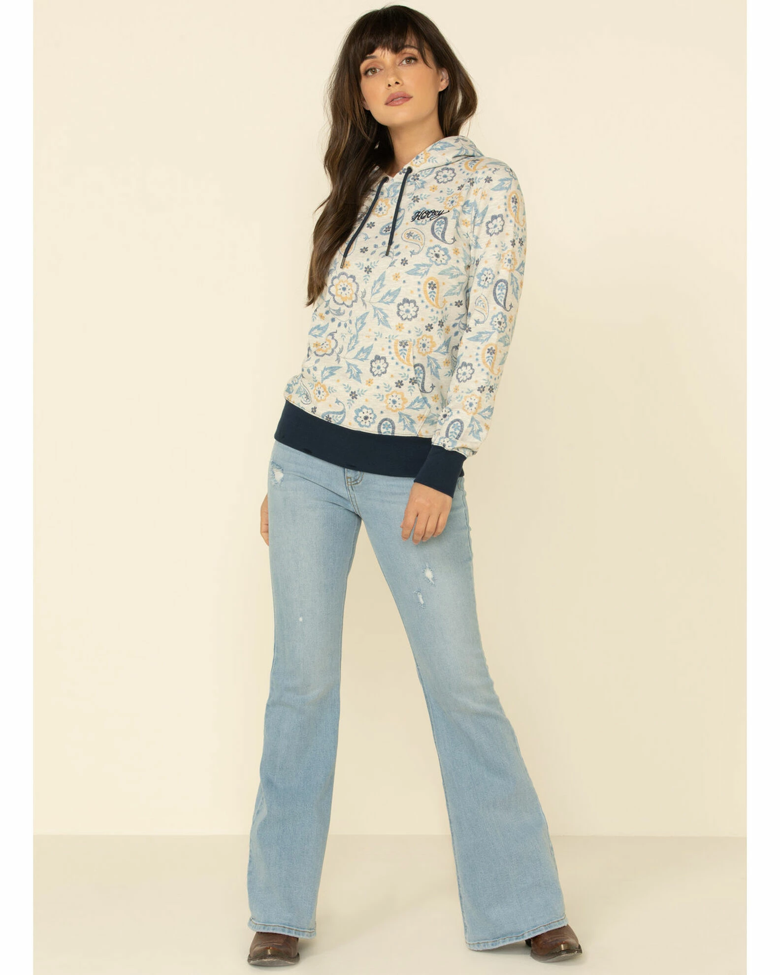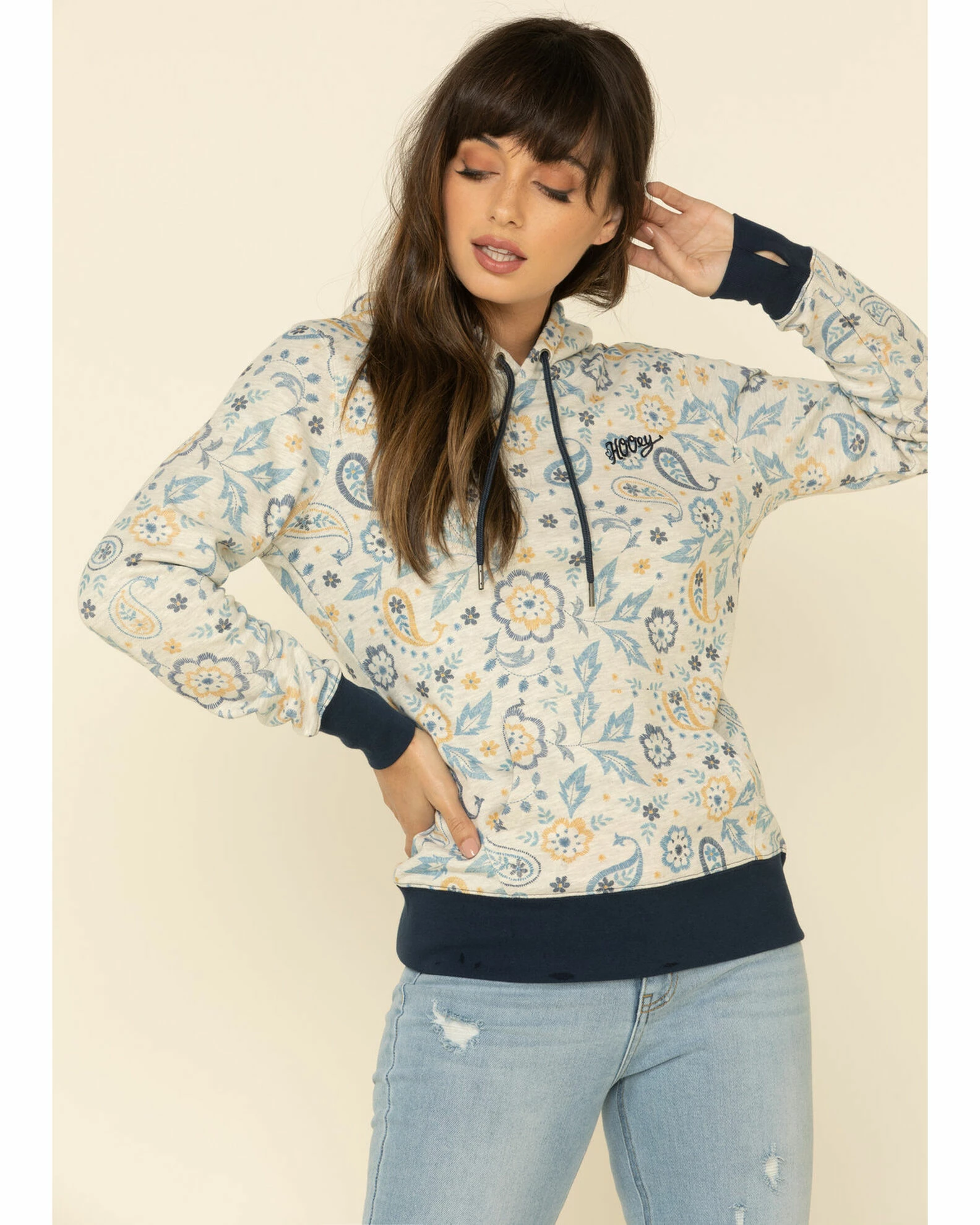 HOOey Women’s Cream Paisley Hoodie Sweatshirt