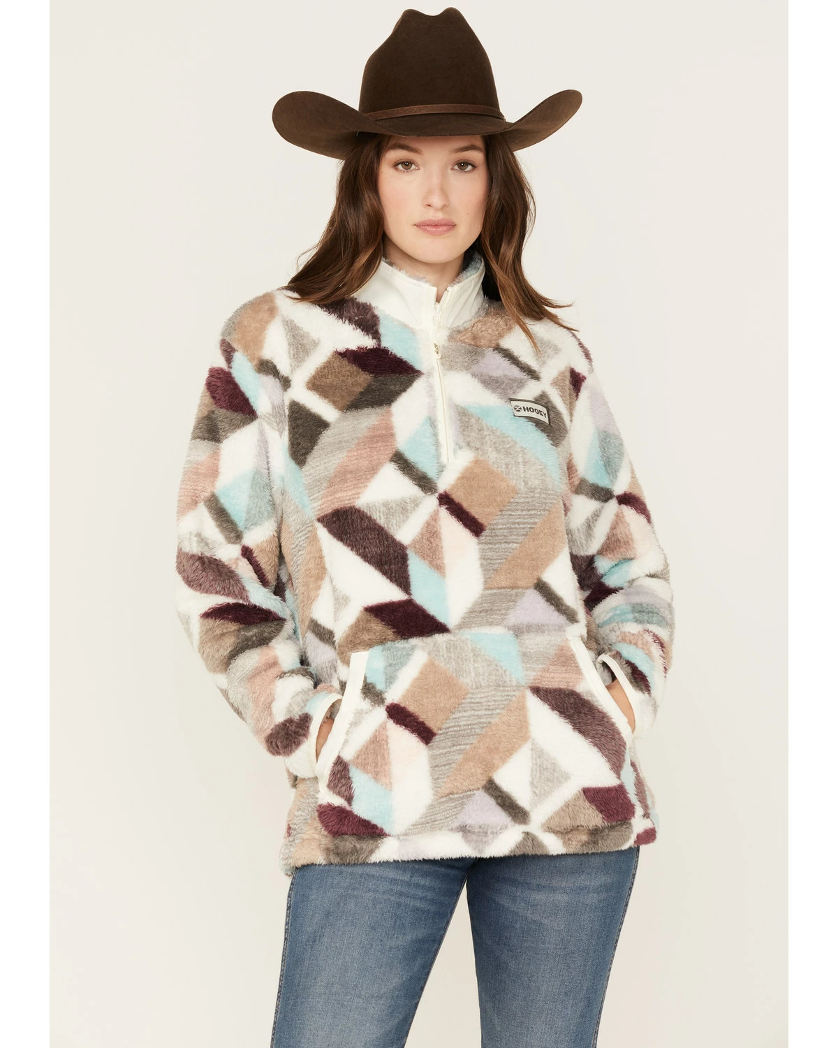 Hooey Women’s Geo Print Quarter Zip Fleece Sweatshirt Cream