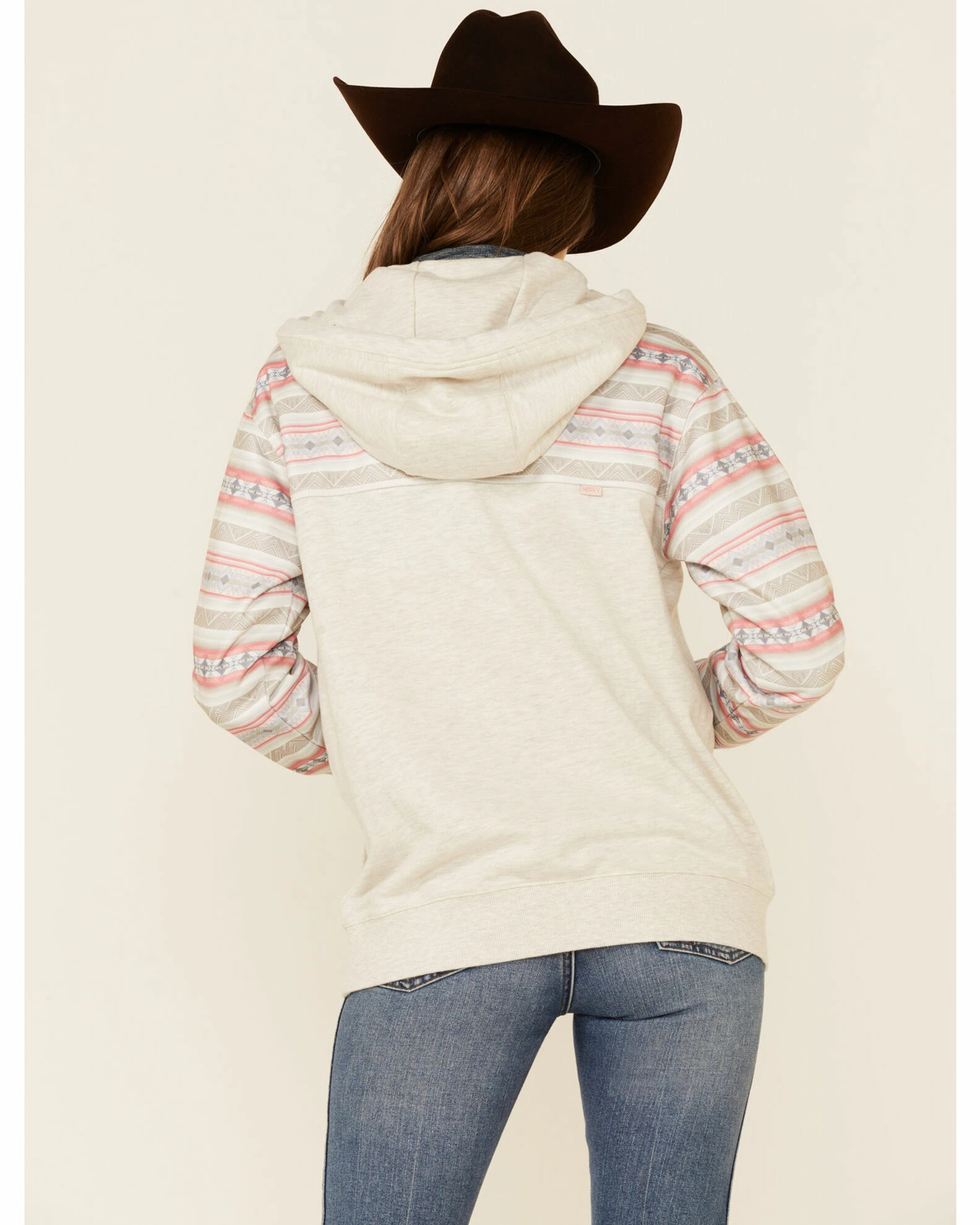 HOOey Women’s Southwestern Print Button Down Hoodie Oatmeal